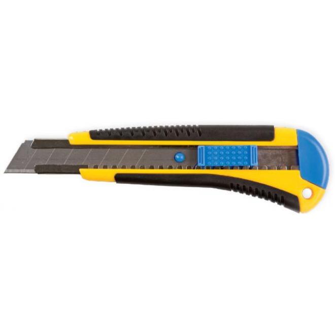 Эргономический дизайн у высококачественного ножа со стальным выдвижным лезвием.
